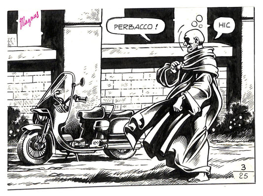 Magnus era un perfezionista assoluto. Ogni tavola veniva costruita con pazienza e precisione, fino a raggiungere un equilibrio quasi architettonico tra disegno e narrazione.