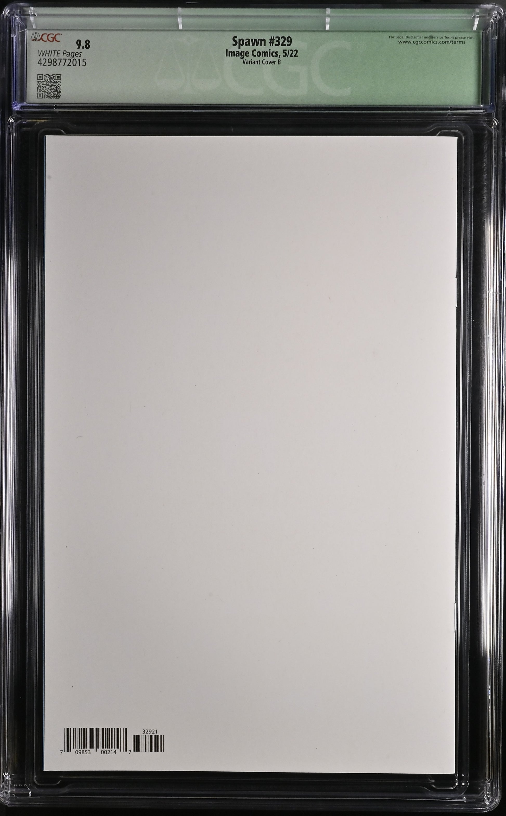 A unique edition for Image Comics collectors and fans of renowned artist Ken Haeser : Spawn #329 features a rare variant cover B featuring a custom remark/sketch and authenticated signature , all certified by CGC with a 9.8 Near Mint/Mint grade. This is a premium copy, ideal for collectors and enthusiasts. A Dynamic Forces Certificate of Authenticity is included.