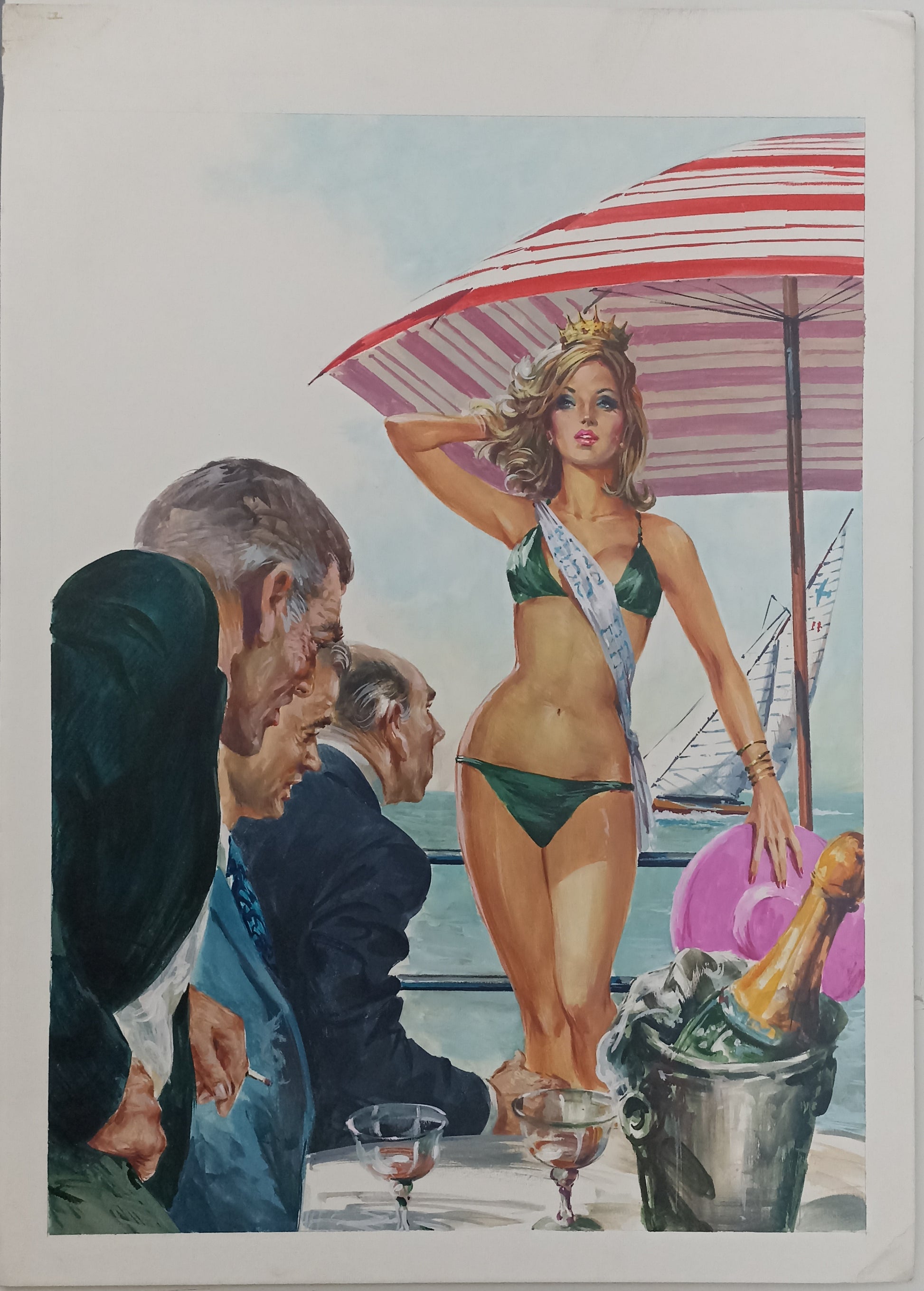 Splendida copertina originale firmata da Averardo Ciriello, maestro dell’illustrazione italiana e figura iconica del fumetto erotico. Realizzata nel 1986 per il numero 50 della collana I Casi della Vita, questa opera è un autentico pezzo da collezione per gli amanti del fumetto vintage e dell'arte pop erotica.