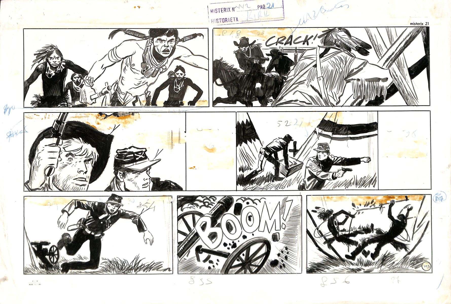 Hugo Pratt - Tavola Originale - Misterix #442 Sgt. Kirk "Path of Blood" Pagina 103 - Editorial Abril, 1957