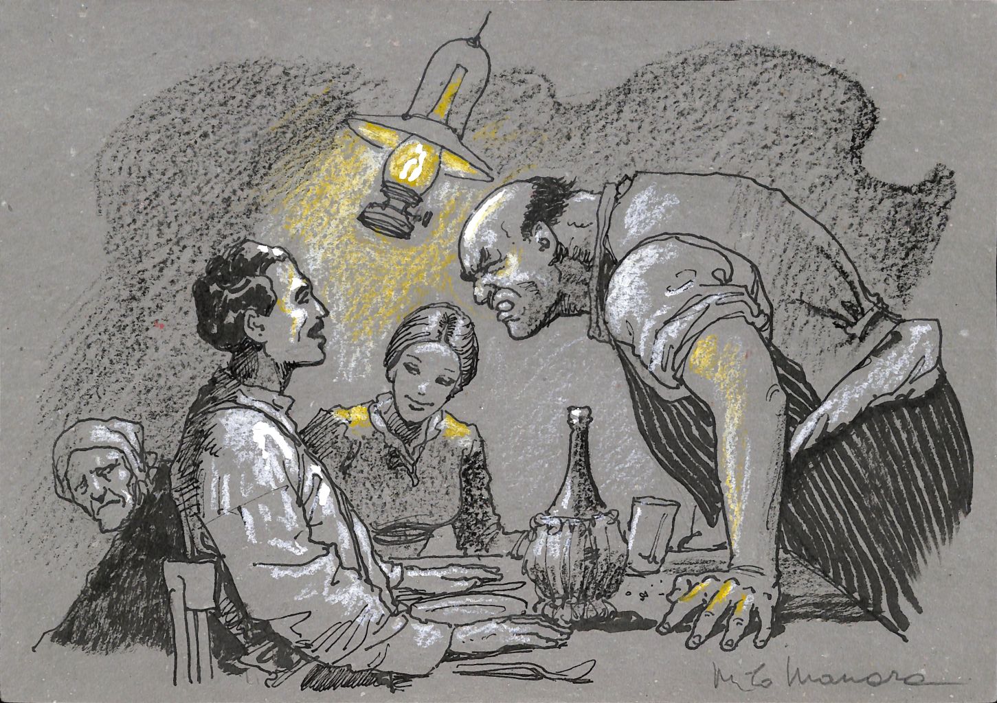 Questa splendida tavola è tratta da Il Trombettiere, opera scritta da David Riondino e illustrata con maestria da Milo Manara, uno dei più celebri disegnatori italiani a livello internazionale. Realizzata con tecnica mista su carta, l'opera riflette tutta la raffinatezza stilistica e la sensibilità visiva che hanno reso Manara una vera icona dell’illustrazione e del fumetto d’autore.